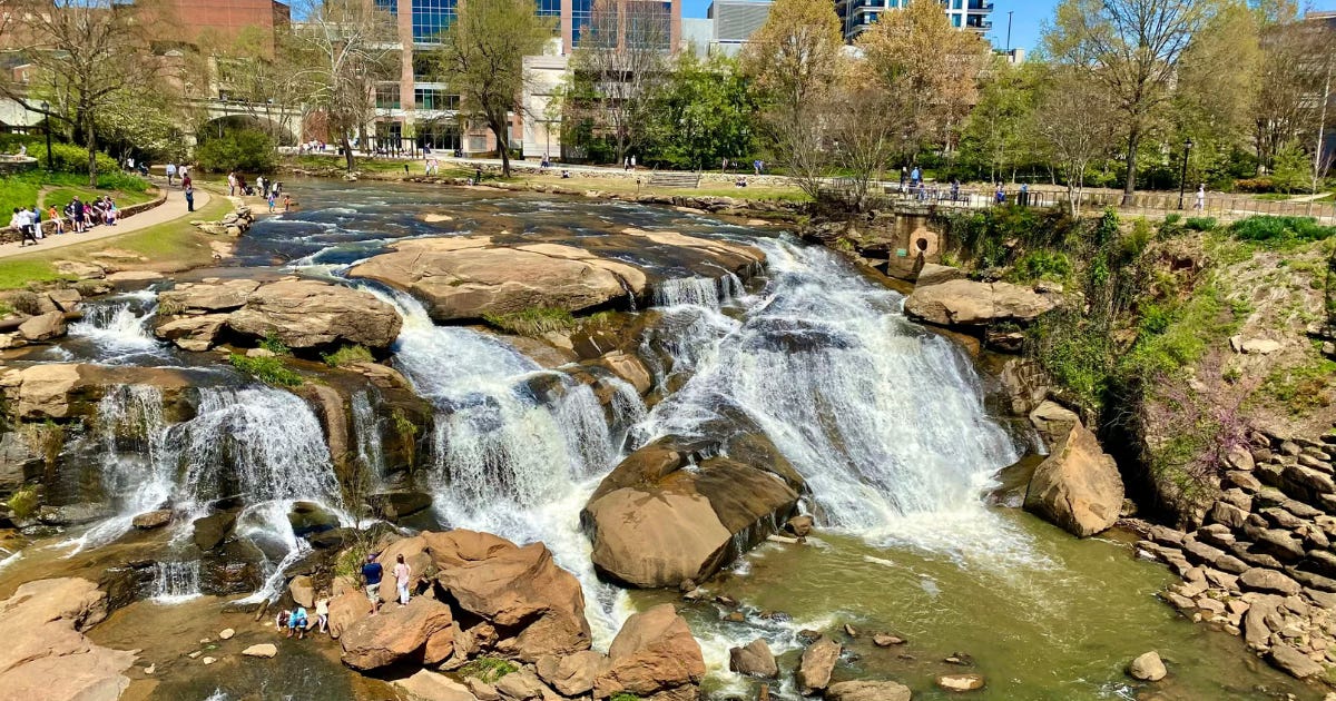 Falls Park on the Reedy is the centerpiece of downtown and one of the best urban parks in the country. Walk the Liberty Bridge — a curved, suspension pedestrian bridge over the falls — and understand immediately why this city punches above its weight.