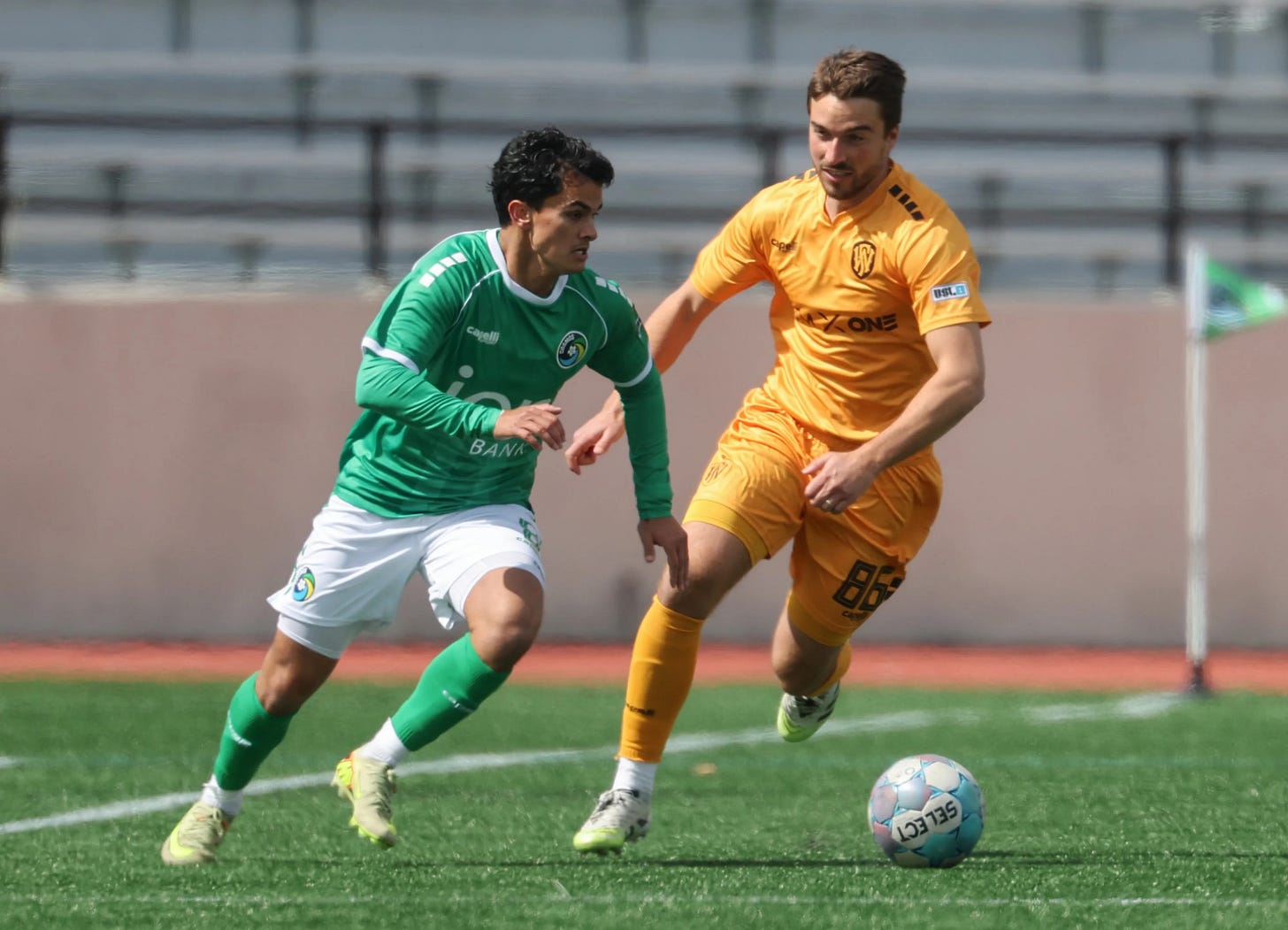 Mike Avery’s side set up in a 5-3-2, with Armas and Jordan anchoring the midfield and Ricol pressing high as the lead striker. The shape functioned. Possession flowed, both wing backs pushed into the attack, and there were genuine stretches of rhythm building from the back. Jack Thomas rattled the post from distance in the 19th minute, the clearest sign that the threat was real. But clear-cut chances were rare, and the Cosmos, sitting deep and absorbing, didn’t need many of their own.